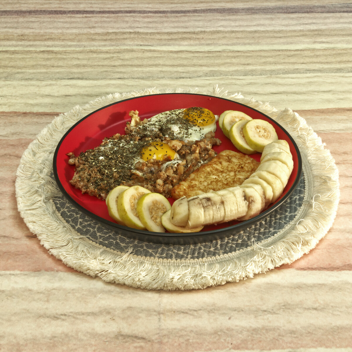 Sunny Side Up Eggs over Roast Beef Hash with a Hash Brown Patty and